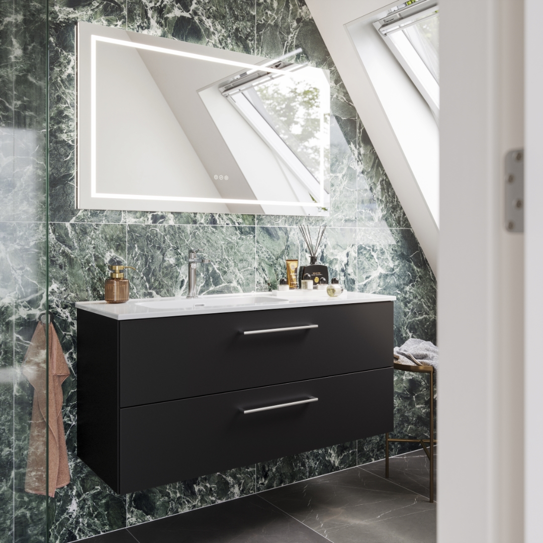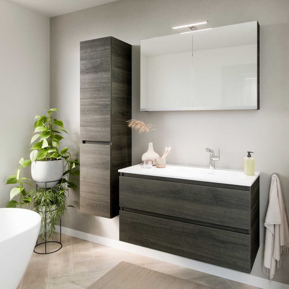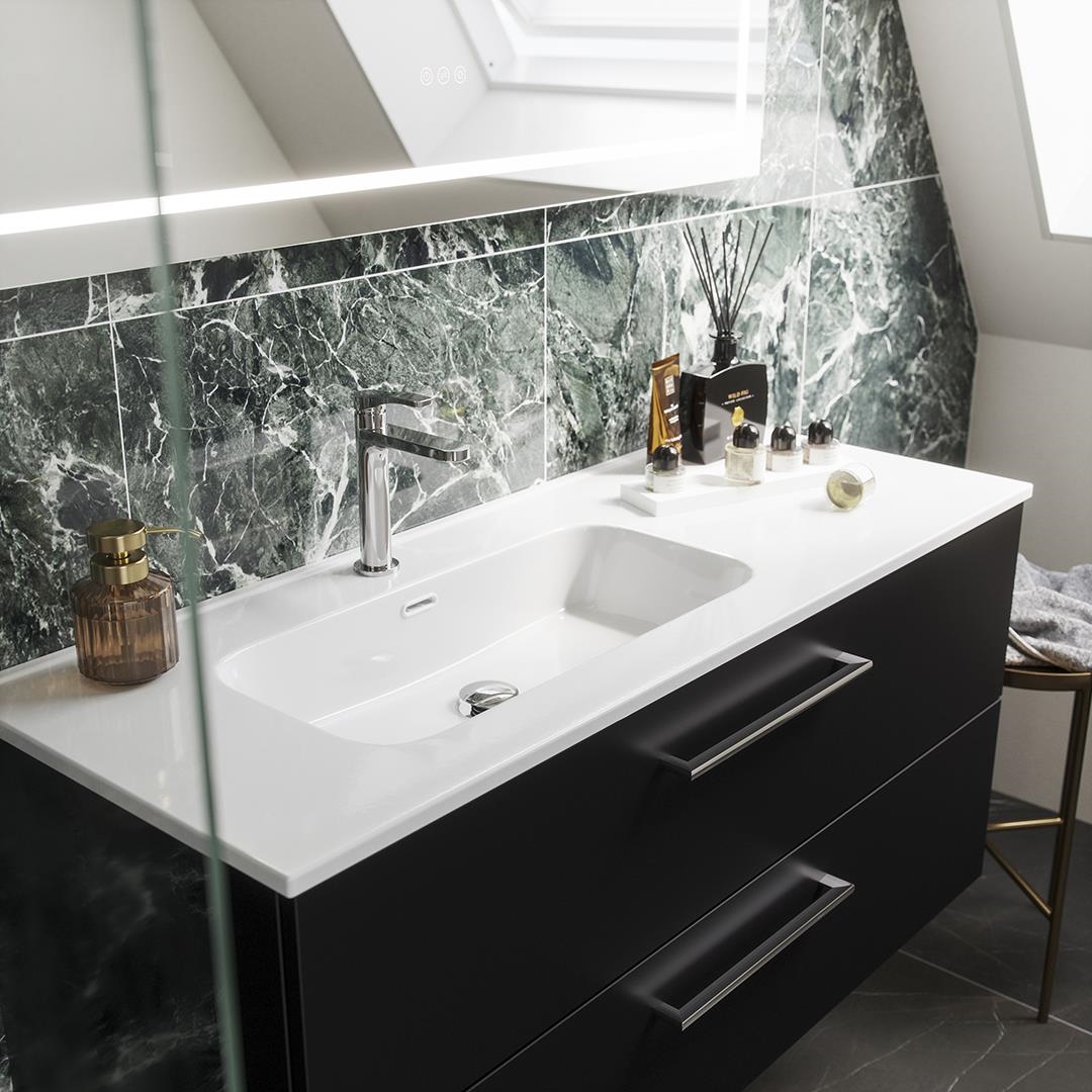 The Third Edition design furniture has competitive pricing. The thin ceramic washbasin top has a fine top line and is also available in an asymmetrical variant.