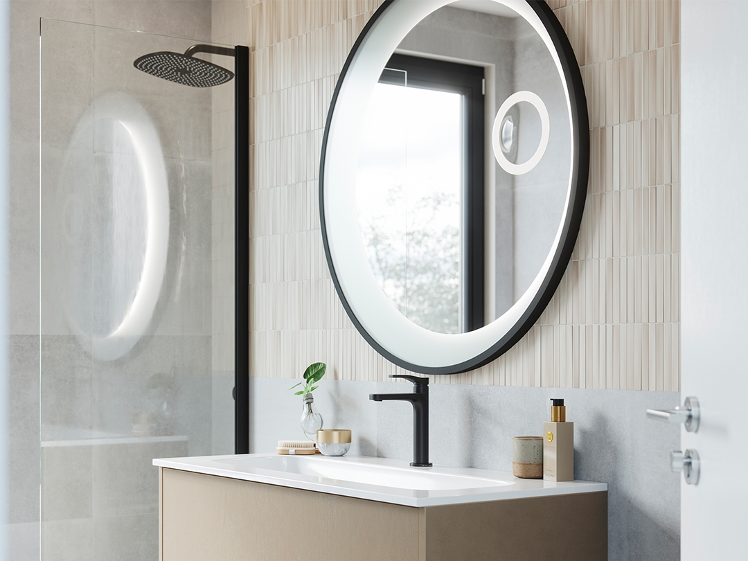 A bathroom is only complete with the perfect mirror reflection. Our collection consists of an extensive range of mirrors and mirror cabinets, each with its own unique appearance. Modern mirror cabinets with double-sided mirror doors and optionally equipped with various lighting options. Mirrors in all shapes and sizes. From basic and square to round and equipped with luxury LED lighting and touch buttons.