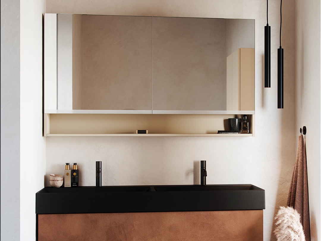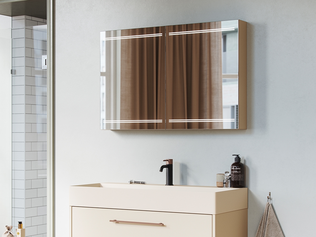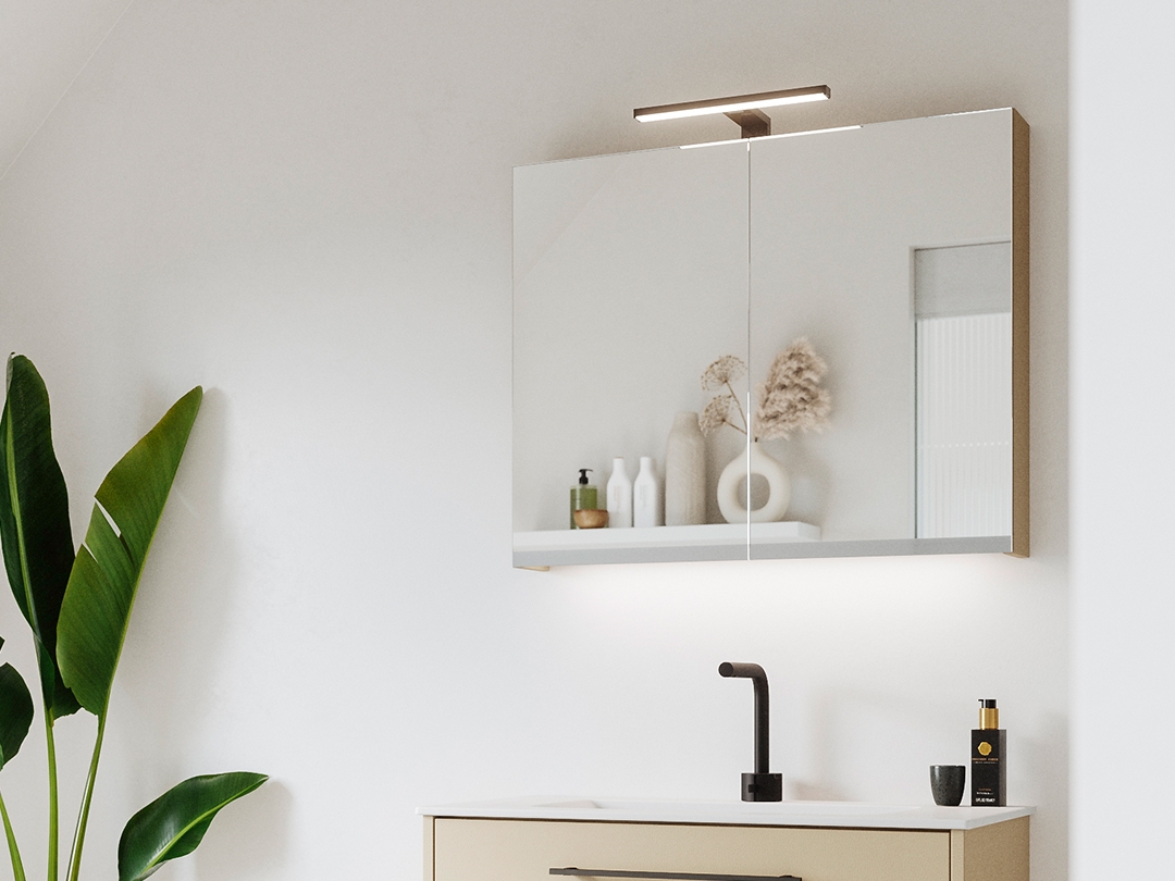 All our mirrors and mirror cabinets are equipped with integrated lighting or are possible with a surface-mounted lamp of your choice.