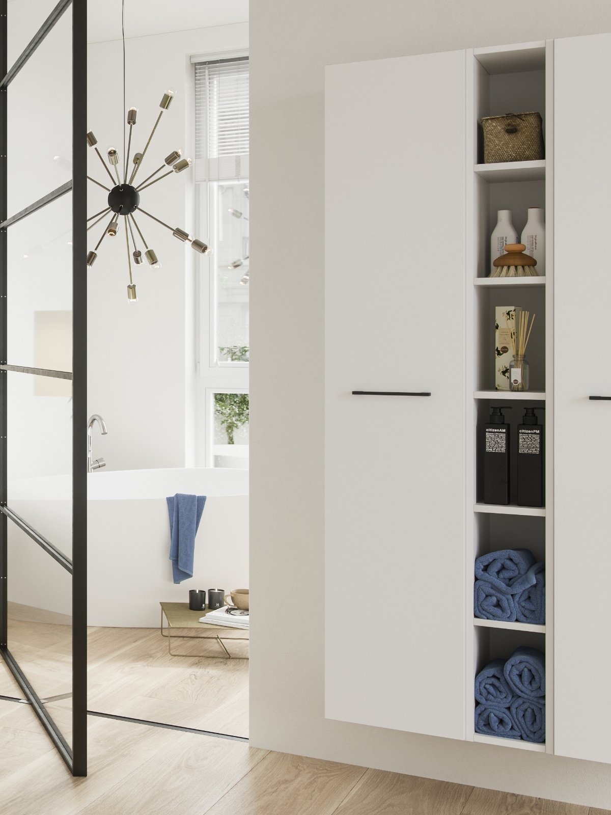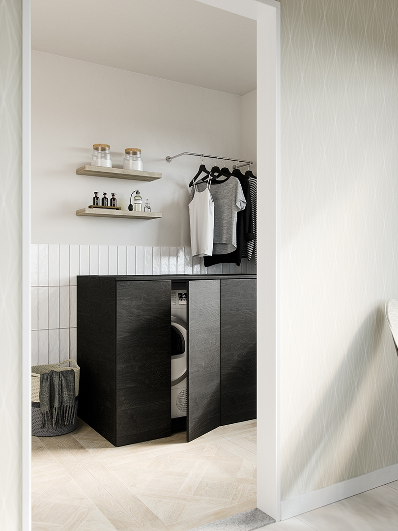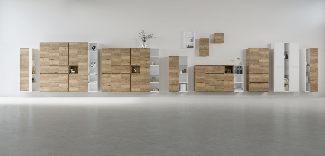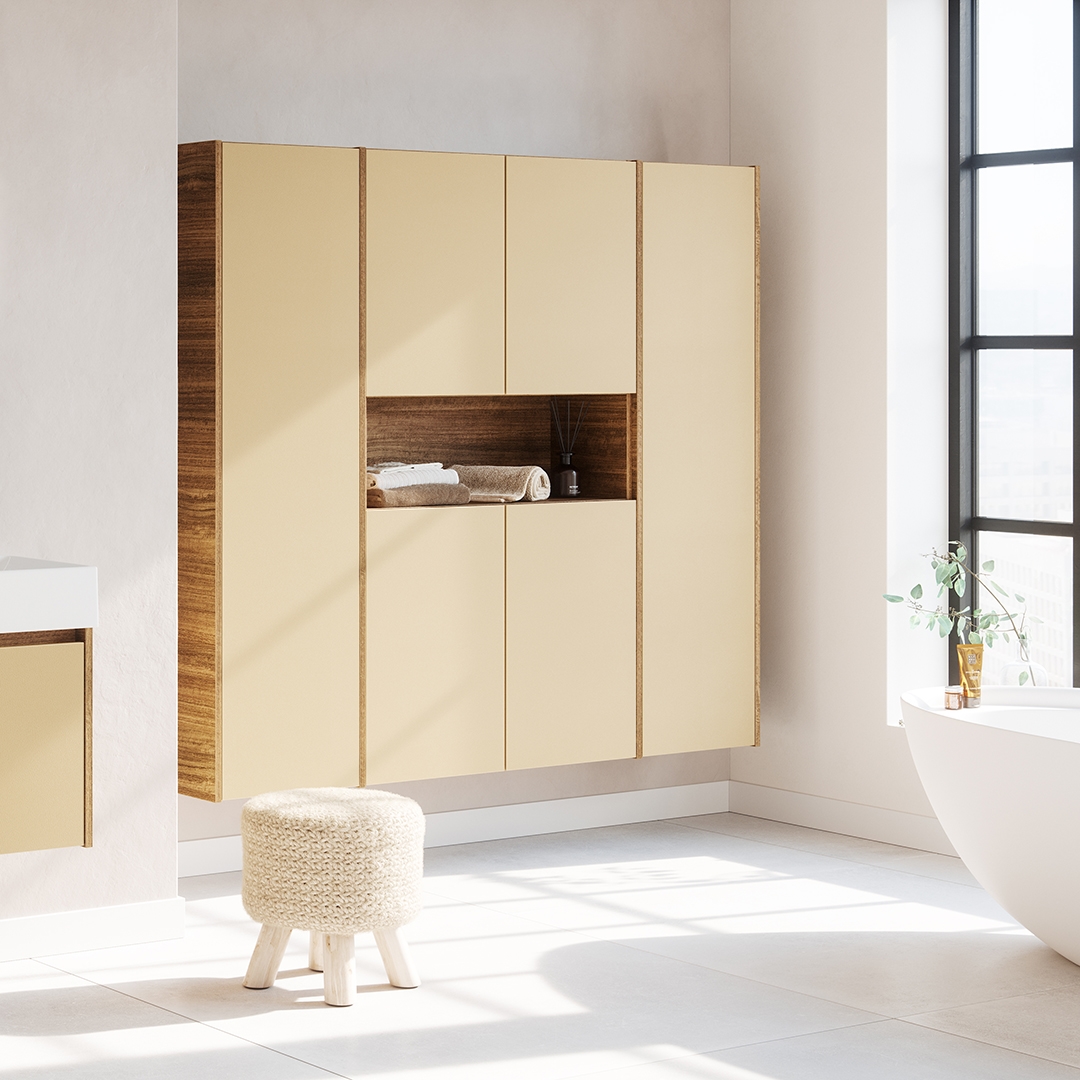 Primabad has an extensive cabinet program. High, low or midi cabinets, upper or lower cabinets and stylish washing machine and dryer cabinets. The cabinets are available in different sizes, various grip options, with or without drawers and optionally with a wash basket. Most variants are equipped with glass shelves and possible in 50 colours. There is also a high cabinet in matt black aluminum for a cool and modern look for your bathroom.