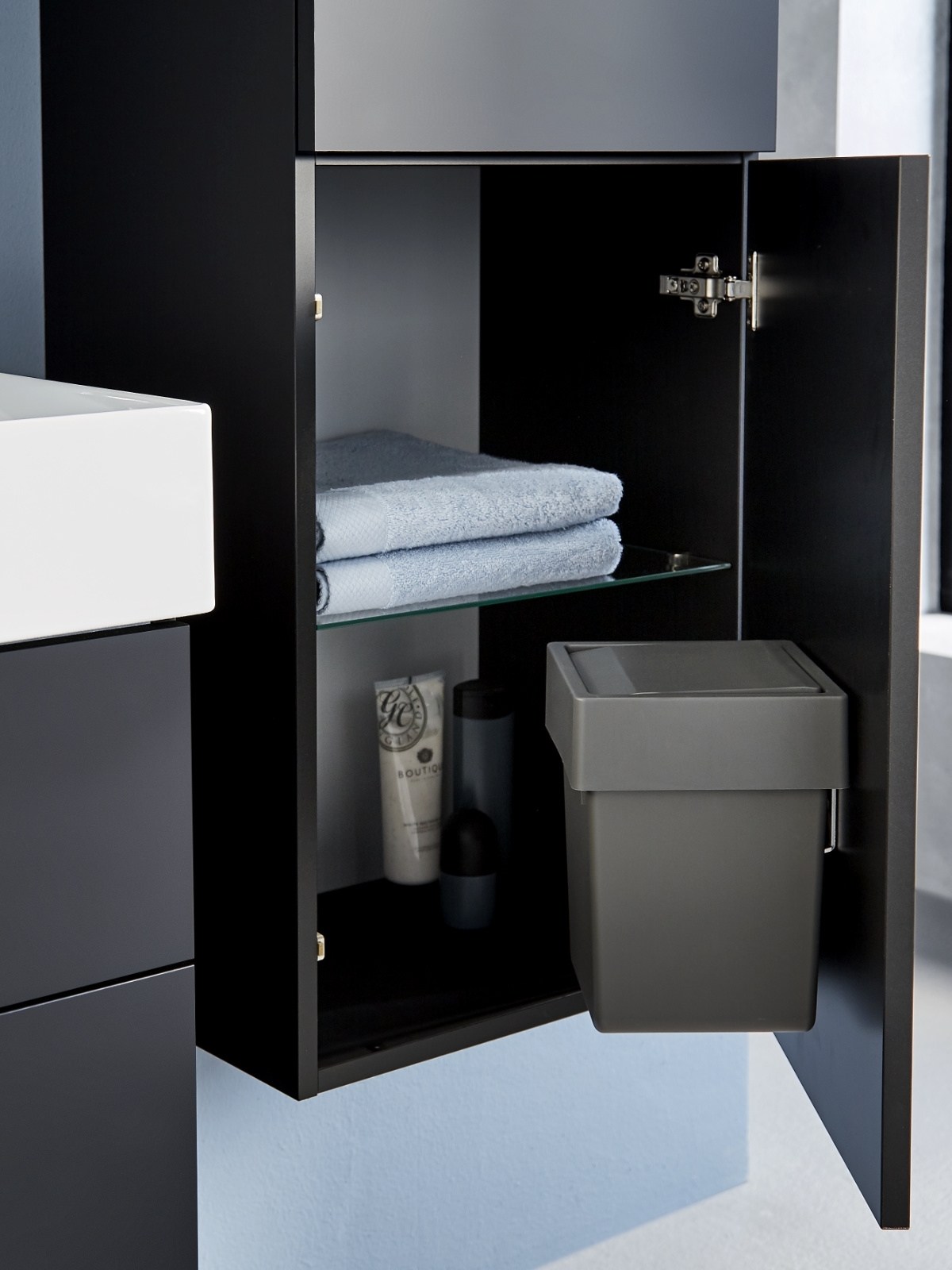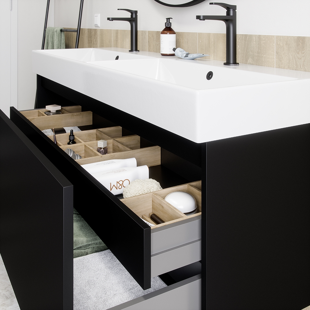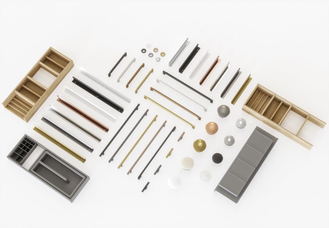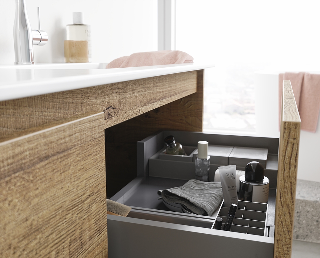 Our extensive range of handles & accessories for your bathroom furniture. Here you will find various drawer organizers, towel rails, drain plugs and cabinet handles to complete your furniture.