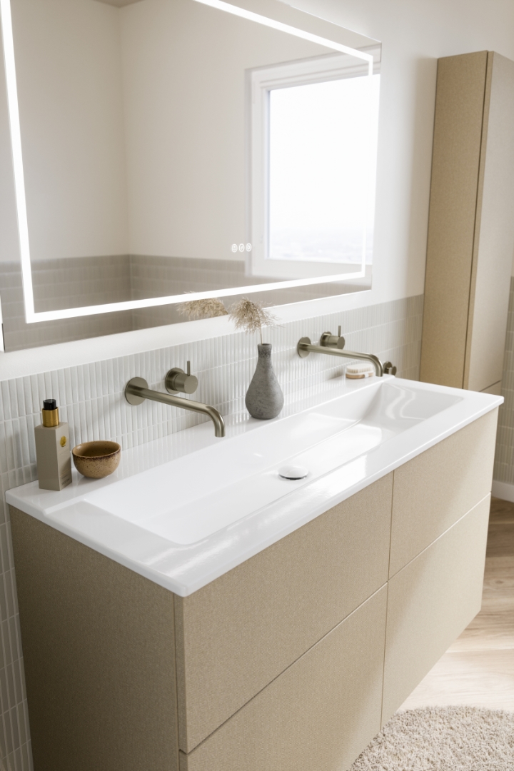 The Level is for those who strive for both aesthetics and functionality in their home. The fine and sleek lines of the washbasin top provide a minimalist look that fits seamlessly with almost any bathroom style.