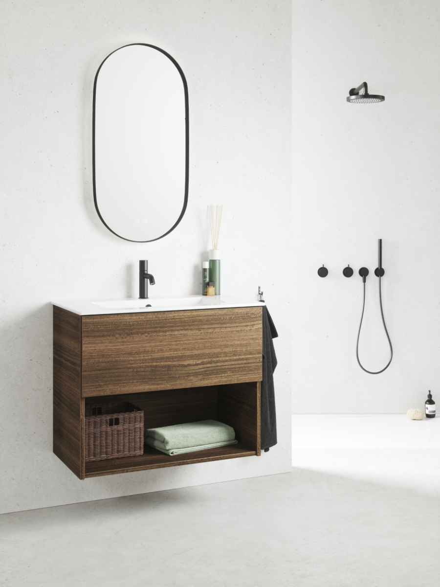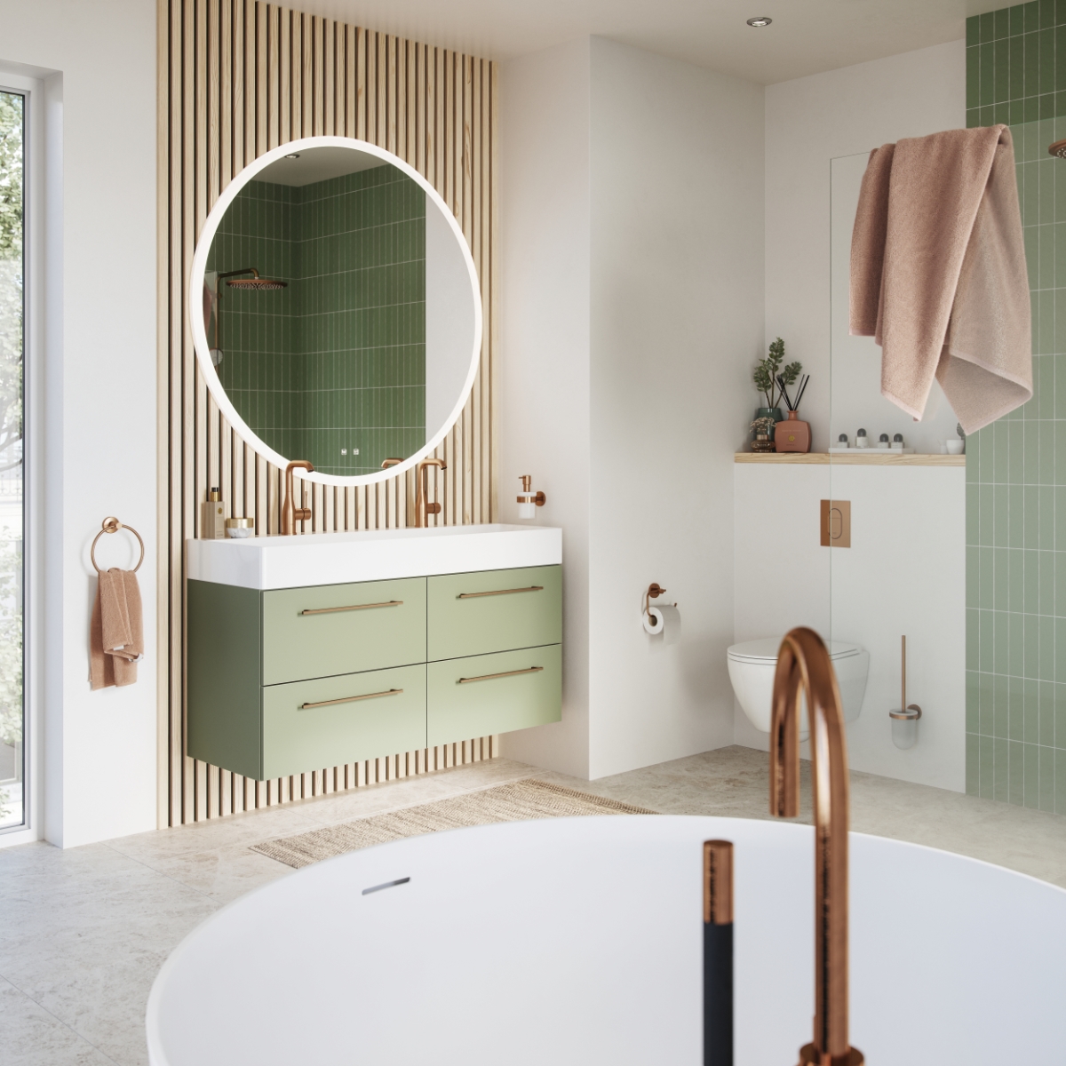 Eucalyptus green is a matte neutral green with gray tones. For a fresh and original color in the bathroom. Also very good to combine with various wood structures for a natural and elegant look.